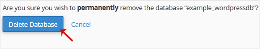 3. Under Current Databases, you can see a list of all your databases. Locate the database you want to remove and click on Delete.