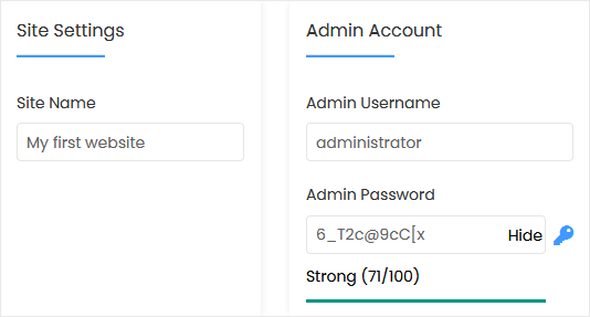 - Admin Username: Your new HTMLy username (for security reasons, do not use the administrator or the admin username).
